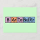 Barman soletrado usando elementos da mesa periódica. Esta é uma ideia colorida e bonitinha para quem trabalha como barman. Boro + árgon + Telúrio + Neodímio + Erbio = BArTeNdEr
