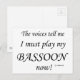 Cartão Postal Bassoon Voices diz que deve jogar