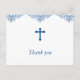Este clássico e tradicional obrigado que você faz do cartão-postal para um batismo ou batizante de meninos apresenta uma cruz azul e um design azul decorativo no topo do cartão-postal. Adicione seu endereço de retorno à parte traseira e qualquer texto adicional, se desejar.