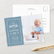 Barato com cartões postais de bebê impresso por encomenda. Este clássico design apresenta um layout de tipografia moderno ao lado da foto do seu filho. Mantenha o fundo azul doce ou use as ferramentas de design para escolher qualquer cor de fundo e editar as fontes de acordo com o seu estilo. Personalize a design com os detalhes da festa Baptism do seu filho. Divirta-se a criar o seu próprio convite de Natal único para o seu filho.