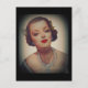 Mulher clássica vestindo batom vermelho vivo. Publicidade de vinhetas.