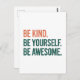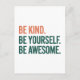 Cartão Postal Be Kind. Be Yourself. Be Awesome.
