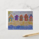 O sol brilha num céu azul claro, as ondas azuis subem a areia ouro e uma fileira de cabanas de praia pintadas de forma brilhante convidam-nos a apreciar um dia maravilhoso à beira-mar. Pintada em azul vibrante, rosa, turquesa, laranja, verde e amarela, esta é uma cor d'água original colorida e atraente, cabanas de praia.