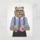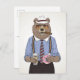 Esta design apresenta um urso vestido a apreciar o café da manhã e um charuto.