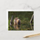 Foto de um castor em um lago verde sorrindo e mostrando seus grandes dentes dianteiros. Sorria e o mundo inteiro sorri com você!