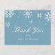 Agradeça aos seus convidados por celebrarem a mamãe de hoje! Este cartão-postal de agradecimento apresenta uma borda de flocos de neve brancos. Personalize com suas informações ou clique em "Clique para personalizar ainda mais" para editar os estilos de fonte, tamanho e cores.