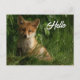 Cartão Postal Bebê Raposa Fofa em uma Floresta Verde