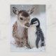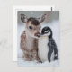 Cartão Postal Bebê Reindeer e Pinguim Feriado de Natal