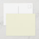 Cartão-postal "bege" de cor clara e sólida (com cor apenas na parte frontal). O bege é um amarelo acinzentado claro; um tom muito claro de amarelo. Clique em "Personalizar" para mudar de cor ou para adicionar texto ou design. Código hexadecimal do produto: #f5f5dc