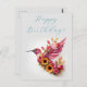 Cartão Postal Beija-flor voando com flores Feliz Aniversário