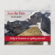 Este casamento divertido, salvar o cartão postal da data, tem uma imagem de duas vacas leiteiras negras e brancas a beijar, em Holstein, com caracteres vermelhos, pretos e brancos personalizáveis. Você pode editar todas as partes deste cartão usando a opção EDIT azul, onde você pode alterar a cor das formas vermelhas, a fonte e as cores da fonte para o que quiser.