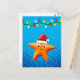 Cartão Postal Bela Cartoon Starfish Santa Hat Luzes de Natal