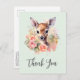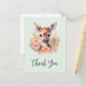 Obrigado Cartaz com uma bela ilustração com um veado fofo. Cercados por rosas e flores cor-de-rosa.