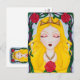 Minha própria pintura acrílica original de Bela Adormecida é usada aqui para criar este cartão-postal de arte. Ela está dormindo em forma de cama criada pela fada malvada, que segura um fuso. O quadro em forma de cama está entrelaçado com rosas e espinhos. O cartão postal apresenta uma imagem recortada na parte frontal e menor da pintura do cheio no verso.