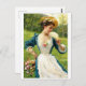 Cartão Postal Beleza Jovem Com Uma Cesta De Rosas