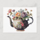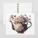Cartão Postal Belo bule de Aquarela, Flores, Equipes