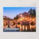 Este cartão-viagem apresenta uma fotografia da famosa cidade de Amsterdã, na Holanda, numa bela noite. Este maravilhoso cartão-postal seria ideal para os melhores amigos, familiares e colegas de trabalho.
