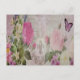 Cartão Postal Belo vintal rosa borboleta fleur de lis