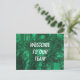 Dê as boas-vindas aos seus novos funcionários com um cartão postal personalizado. Este cartão postal de boas-vindas profissional à nossa equipe apresenta uma bela foto de uma pedra preciosa que captura cores verdes vibrantes. Este padrão abstrato único exibe tons de verde claro e verde escuro formando linhas onduladas, nuvens e formas geométricas, tudo criado pela natureza. "Bem-vindo à Nossa Equipe" e outras palavras de boas-vindas, juntamente com o nome da sua empresa no verso, podem ser personalizados para atender às necessidades do seu negócio.