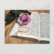 Cartão Postal Bíblia e Rosa púrpura com corrente cruzada