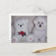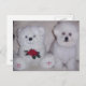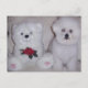 Cartão Postal Bichon frise com ursinho branco.