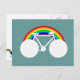 Uma ilustração digital de uma bicicleta branca e um arco-íris colorido