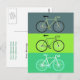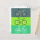 Cartão postal com tema de bicicleta. Três bicicletas em tons de verde.