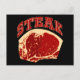 Uma design de comida retrô. Estes cartões de t-shirts e outros artigos são impressos com uma imagem de carne com a palavra bife em letras grandes.