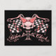 Uma caveira de garota motoqueira e bandeiras xadrez, rosa e preto, com uma Cruz de Malta e "Biker Chick" em letras cursivas. Camisetas, moletons, cartões, presentes.