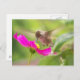 Bebê Hummingbird pegando néctar de um Cartão-postal de Cosmos Daisy, cor-de-rosa quente, fúchsia.