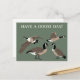 Mande a saudação perfeita para o seu amante de pássaros favorito com este cartão postal personalizável. A mensagem "TER UM BOM DIA!" na frente pode ser personalizada com seu próprio ditado. E há muito espaço para escrevendo sua própria mensagem. Este cartão-postal apresenta ilustrações realistas do estilo dos gansos canadenses em castanho, preto e branco contra um fundo verde-sábio.