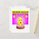 Uma banana cartoon soprando as velas em seu bolo de aniversário. Ilustração disponível em vários presentes e produtos.