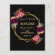 A Save the date card for a 50th (or any age) festa de aniversário. Na frente: estilo de boho da Trendy Bohemian. Decorado com rosas de cor aquosa, em burgundy e rosa. Fundo negro elegante. Uma imagem geométrica dourada falsa e modelos para um nome, data e idade. Letras coloridas brilhantes. O nome e o texto: Salvar a Data são escritos com um script de estilo moderno com letra manual. Fundo branco. Dica: Se você não quiser que pareça um cartão postal, clique em personalizar, vá para o verso e remova o divisor e o carimbo de posto.