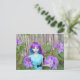Este cartão-postal apresenta uma imagem de uma das minhas bonecas no meio das flores do nosso jardim. O nome dela é Gemma, e ela foi moldada a partir do molde Mika pela empresa Mirodoll.