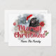 Cartão Postal Black Pug Feliz Natal com Poinsettia Flower