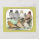 Sete pombos-loiro clássicos são mostrados em padrões barrados e lacrados. As lodinetes não têm as marcas brancas da Satinette.