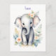 "Blooming Baby Elephant" é um design macio e animador que apresenta um elefante bebê cercado por flores delicadas. Com a sua aparência suave de aquarela e a opção de nome personalizável, esta ilustração é perfeita para celebrar novos começos e criar uma lembrança memorável. Ideal para berçários, chás de fraldas, ou como um presente pensativo para os entes queridos.