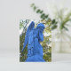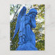 adorável arte derivada de uma das minhas fotos de uma estátua de zink de um anjo do cemitério. a ozida zink dá-lhe a cor azul vibrante vista aqui de baixo com folhas de árvores e o céu acima.