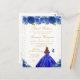 Este elegante e glamouroso e doce convite de 16 anos apresenta uma bela princesa com cabelo vermelho castanho e pele clara em um vestido azul real de bola. O texto combina o script manuscrito e as fontes sans serif modernas para um aspecto elegante e sofisticado. Os arranjos florais, borboletas e confete de ouro criam a mistura perfeita de rústicos e quicos. Gráficos por www.etsy.com/uk/shop/SunflowerDayLove
