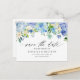 Cartão Postal Blue Hydrangeas e Rosas de marfim salvam a data