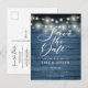 Cartão Postal Blue Rustic String Luz QR Código Salvar Data