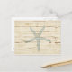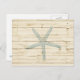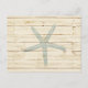 Cartão Postal Blue Starfish Faux Cream Wood Beach