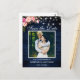Cartão Postal Blue Wood Lights Pink Floral Photo Save the Date (