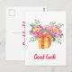 Cartão Postal Boa sorte Peônias Aquarela Fofa