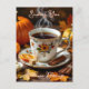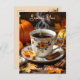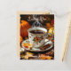 Cartão postal do bonito Fall, dizendo: "Enviando suas Bênçãos de outono" para um amigo ou membro da família. Uma ilustração ai de uma cena do outono com uma xícara de café quente, fatias de laranja, abóboras e folhas de outono.