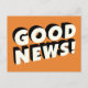 Desenho com uma mensagem de notícias excelentes! O logotipo de letras com relevo e a cor de fundo podem ser modificados!
