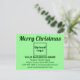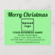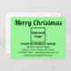 Feliz Natal! Um dos feriados mais comemorados do ano. É também uma das melhores estações para anunciar sua empresa ou promover seu nome de marca para clientes ou clientes. Cartão postal que você pode personalizar para colocar sua marca comercial e com saudação de Natal. Personalize-o e use-o para saudar seus clientes ou clientes neste Natal e como material de marketing para anunciar sua empresa ou promover seu nome de marca. Cartão postal personalizável que você pode usar para criar reconhecimento de nome de marca. As cores design são textos verdes escuros sobre fundo verde claro. Para personalizar este cartão postal, carregue o logotipo da sua empresa, digite seu nome, endereço, número de telefone, e-mail e site ou a página de mídia social da sua empresa. Verifique a aparência após carregar o logotipo e digitar textos. Se a aparência lhe agrada, você pode colocar seu pedido agora. Se você precisar redimensionar e mover o logotipo e os textos para o ajustado neste cartão postal, troque a ferramenta design. Você também pode alterar a cor do plano de fundo, a cor da fonte e o estilo da fonte na ferramenta design. Você também pode adicionar imagens e textos no verso deste cartão postal na ferramenta design. Feliz Natal! Desejando mais vendas neste feriado.
