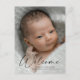 Cartões de agradecimentos De Nascimento Da Foto Do Bebê, Bem-Vindo, Script Moderno. A parte de trás contém uma segunda foto e obrigado que você envia e que você pode personalizar ou remover se preferir escrever seu obrigado manualmente. Clique no botão editar para personalizar este design.