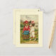 Dois cachorros doces no traje mais fino vêm trazendo flores e "Melhores Desejos de Aniversário". Imagem de cartão postal de férias Vintage