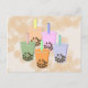 Chá de bolha em vários sabores com rostos sorridentes fofos.